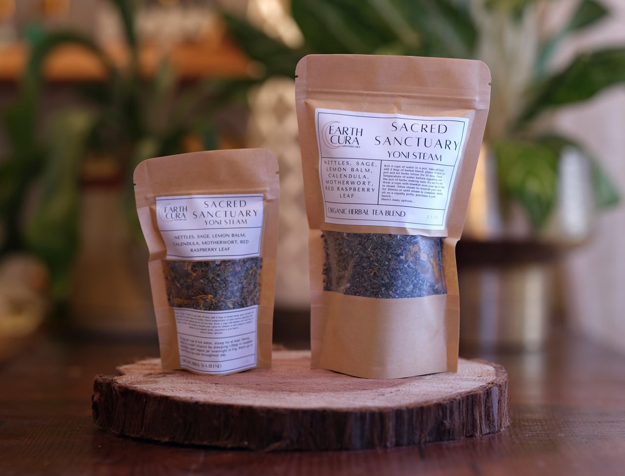 Boil 4 cups of purified water in a pot, take off hear, add 2 tbsp of herbal blend, place lid back on and let infuse for 10 mins. Check temperature of water before squatting over pot of herbs, wrap blanket around waste allowing steam to nourish your vulva for 20mins or until steam is complete. Ideally sit on a squatty potty, purchase a yoni bench.