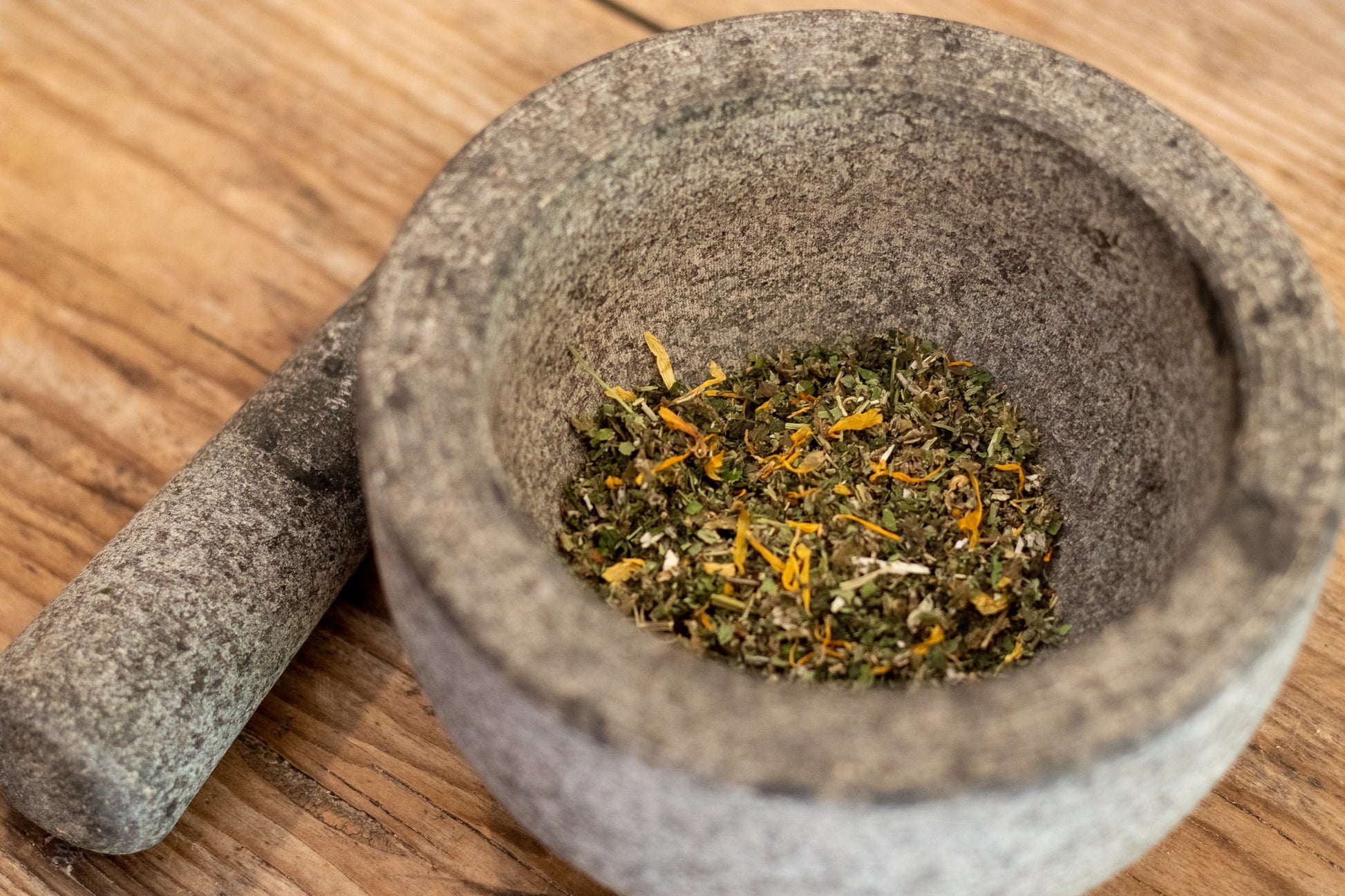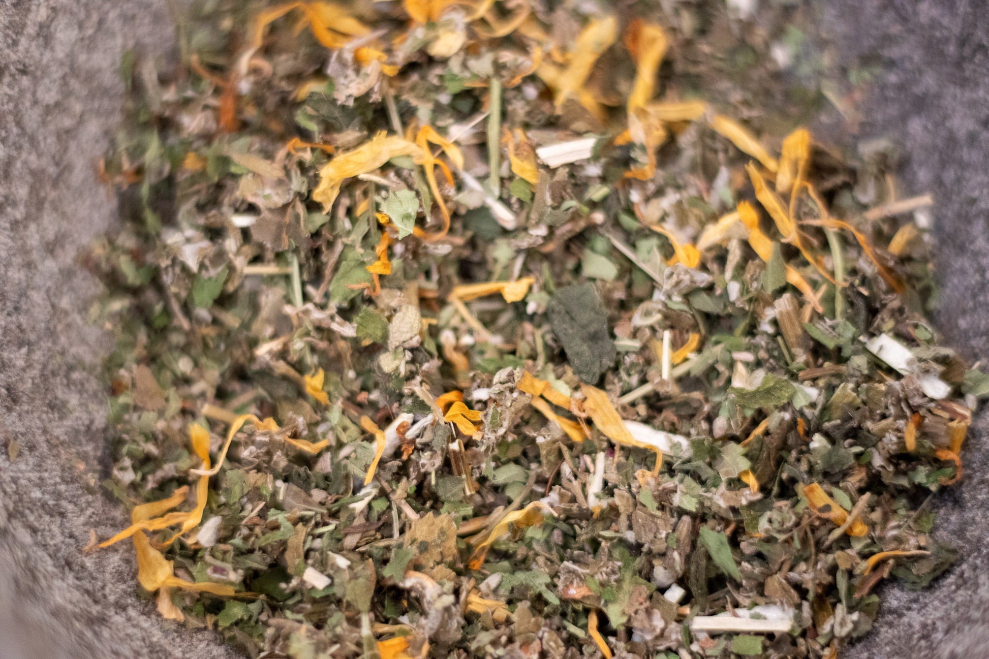 Organic Sage, nettles, calendula, lemon balm, motherwort, red raspberry leaf